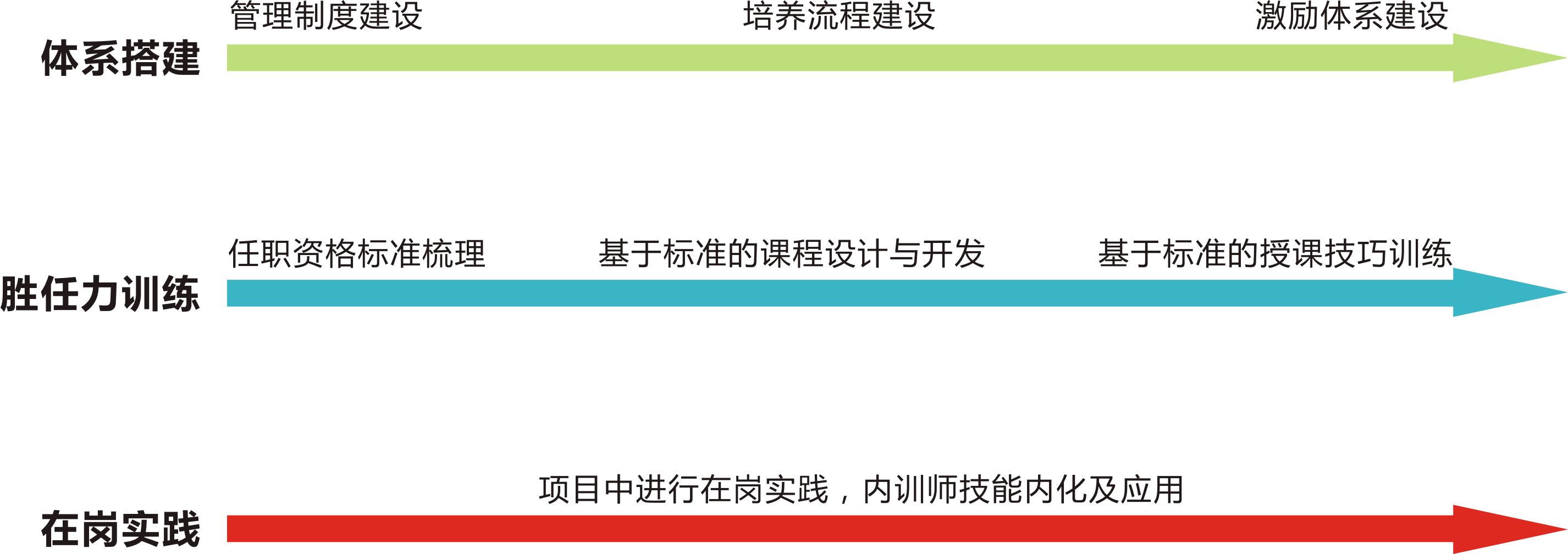 我们认为企业内训师培养需要抓住三大关键任务——体系搭建、胜任力训练、在岗实践。